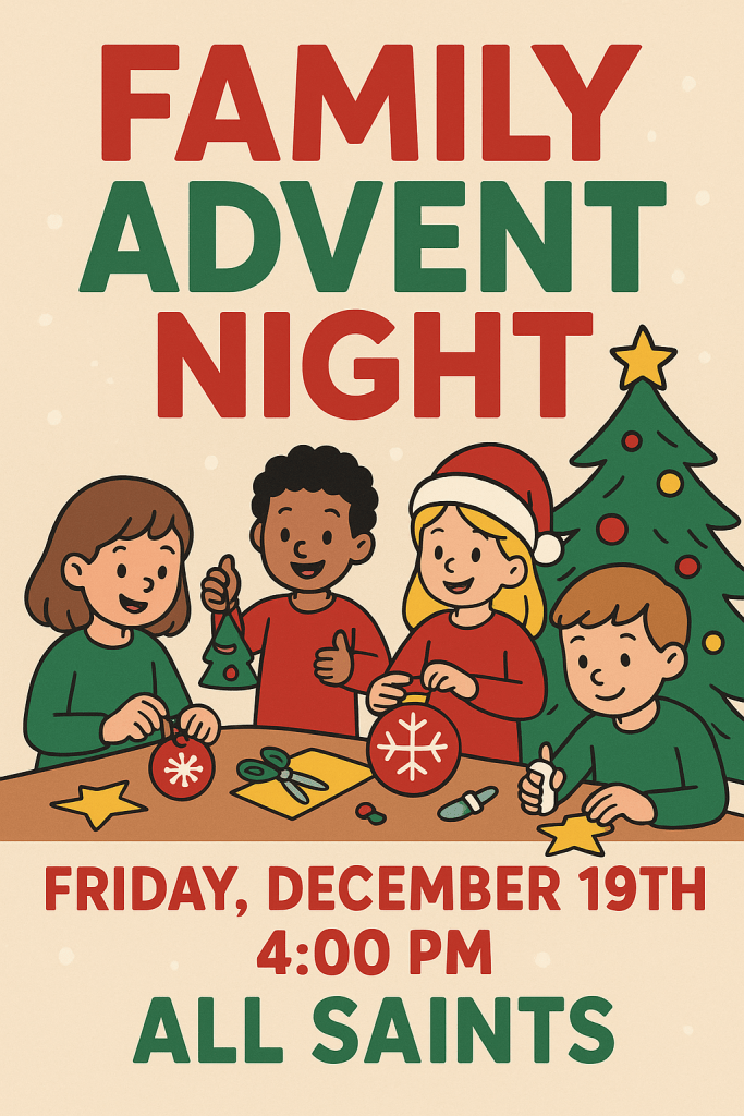 The Family Advent Night will be held inside the All Saints Episcopal Parish Hall, located at:
